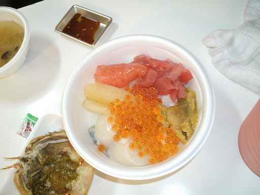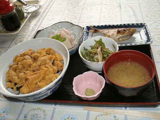 佐渡で海で採った(ホントはアカンのだけれど)ウニを食べた事があるが、このウニ丼のウニは冷凍してあり、採って直ぐの物ではないと思う。