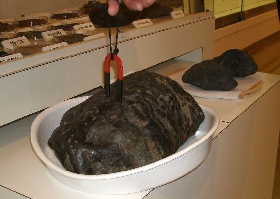 一番右端の塊が「玉鋼」 輝いていて綺麗でしょう。