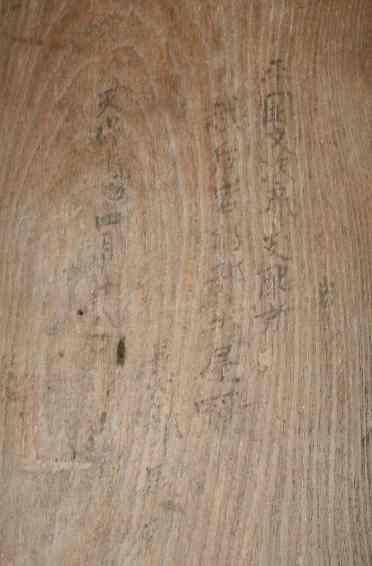 堂内に入ってみると、柱とか板壁に墨で書いたらしいのが有ります。