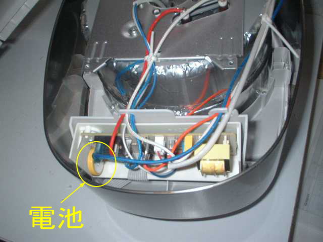 手前は電気業に手を染めた事の有るケチな野郎でして、電気釜の裏蓋を開けて電池の場所を確認しており、電池規格さえわかれば自分で交換出来ると思いますので・・」