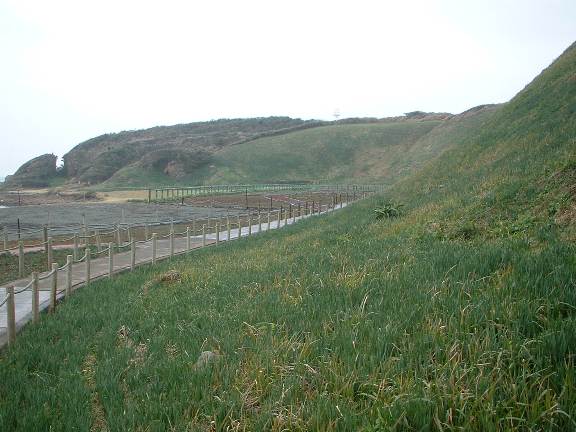 爪木崎の駐車場から灯台の有る丘を見ると、やっぱし昔と違います。