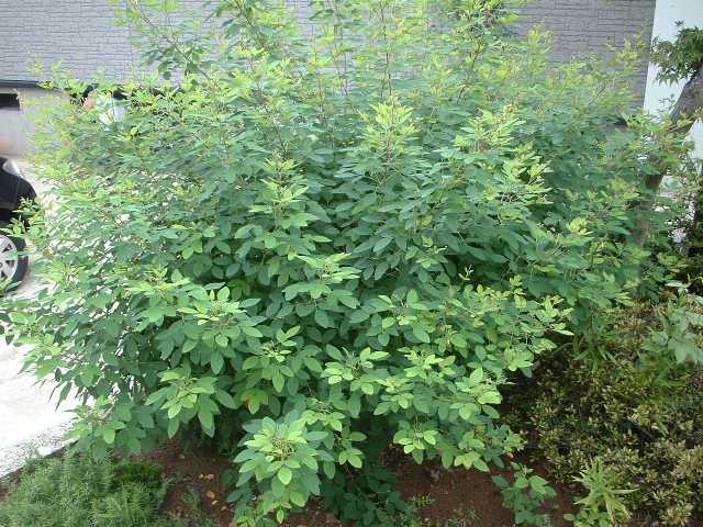 他の仲間の萩は、ほれ・・まだ青々とした葉っぱだけなのにぃ。