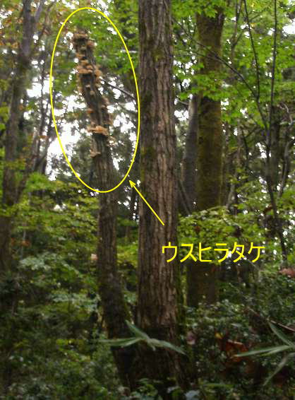 おぉぉぉ・・・ひょっとしたら、あれは「ウスヒラタケ」ではねぇか。