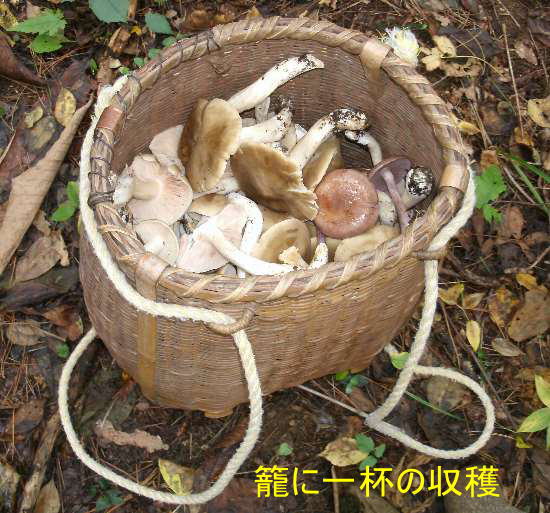 正直者のジサマの大きい篭には、キノコがドッサリ。