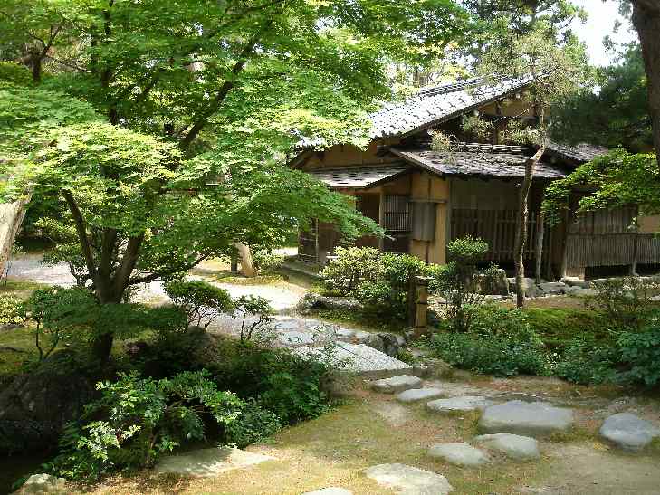 上の真ん中の家屋室内から庭を眺めたのが、この写真です。