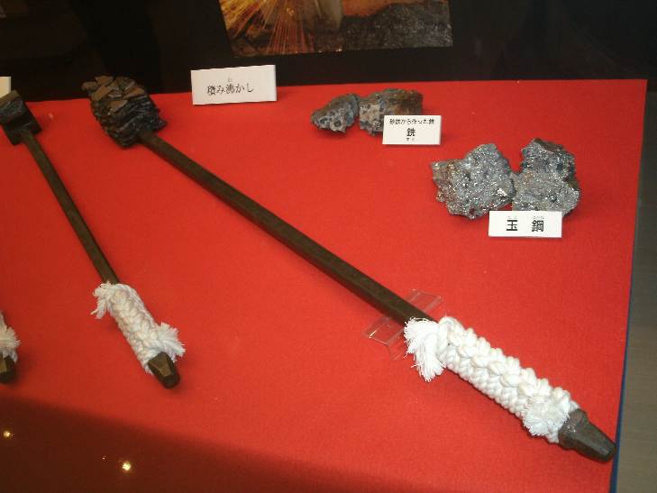 一番右端の塊が「玉鋼」 輝いていて綺麗でしょう。