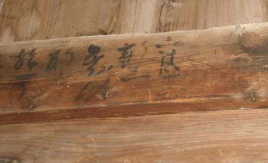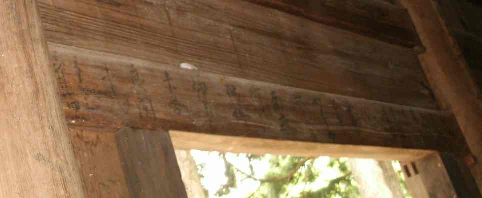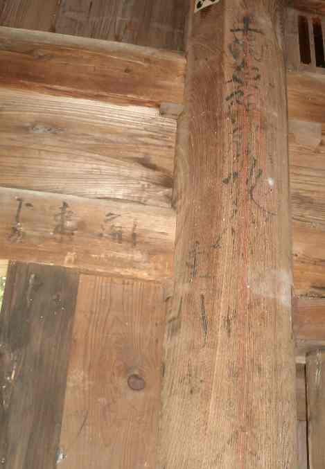 堂内に入ってみると、柱とか板壁に墨で書いたらしいのが有ります。
