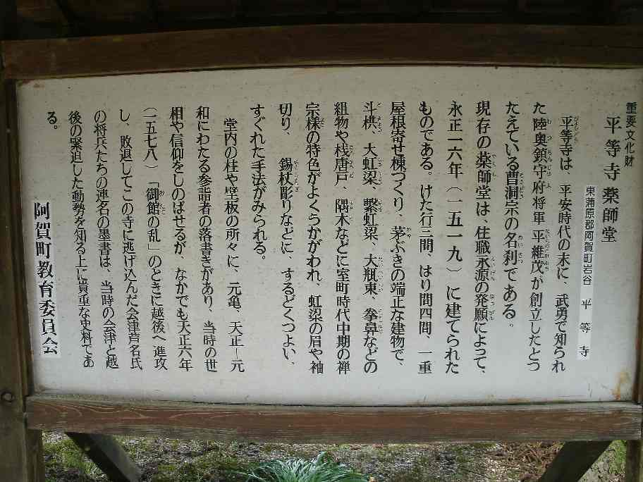 越後の国、そりはそりは山深い所(東蒲原郡阿賀町岩屋)に「平等寺」という薬師堂が有ります。