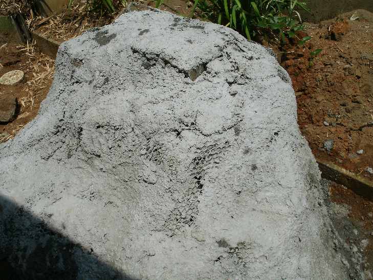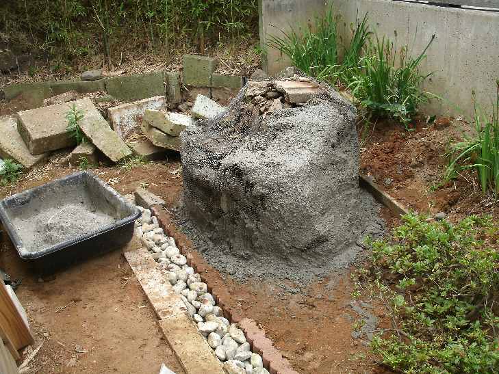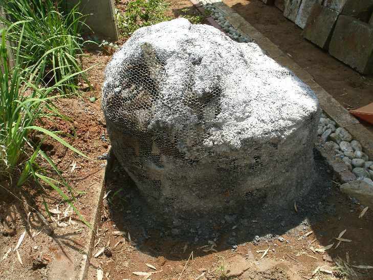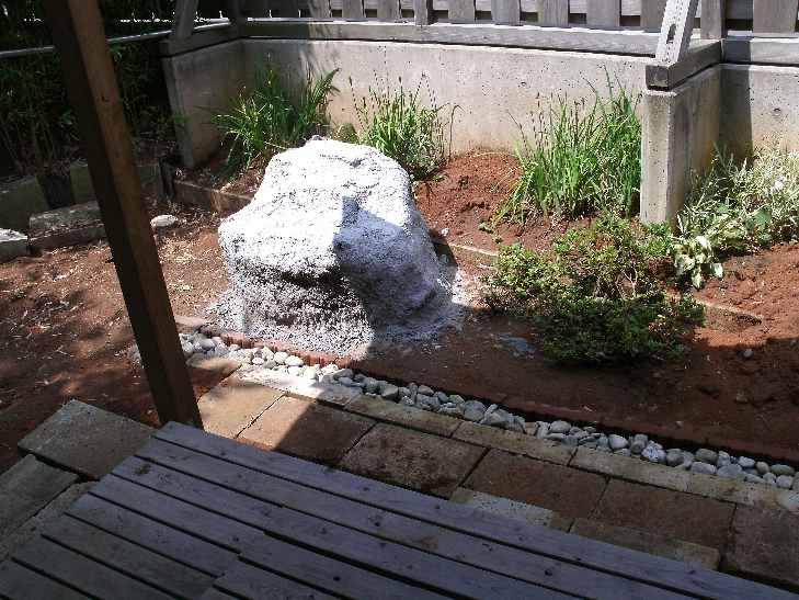 ネットで調べると、やっぱりσ(*_*)と同じように不要品をセメントで固めて庭石を作った人が居ました。