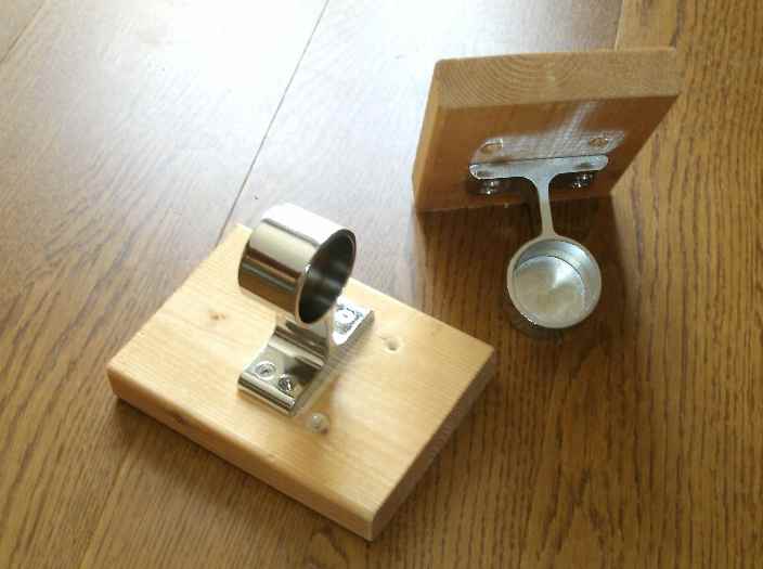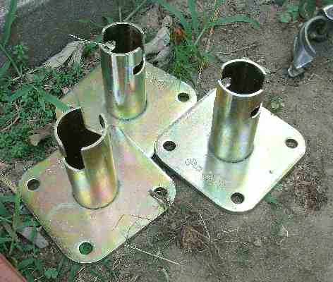 こんな金具を こんな風に穴に入れ 鉄パイプを差し込み柱とします。