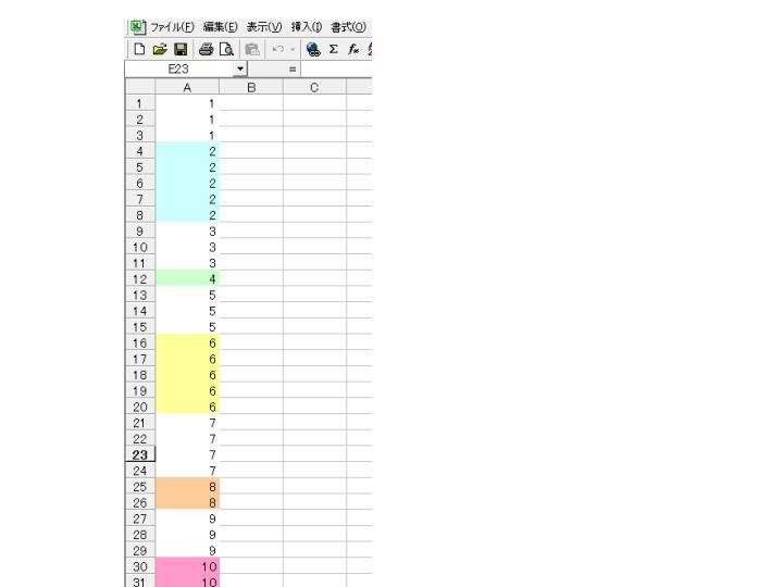 写真のように、奇数は白色、偶数は数字によって色分けするVBAを作りました(数字の数は不特定)。