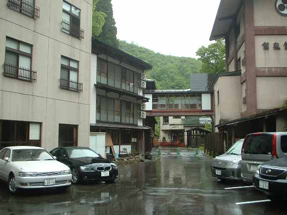 栃尾又温泉の「神風館」(クノックしてね)という所で、そこには3件しか宿が無く、その道の奥は行き止まりです。