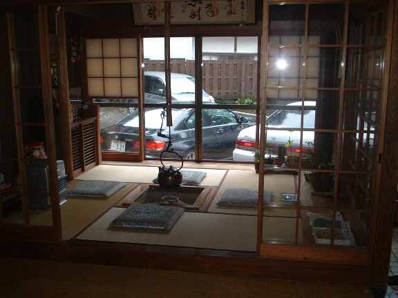 宿の中には、こんな部屋もあり、朝起きた時に、ザブトンに座ってタダのコーヒーを飲みながら、新聞を読みました。