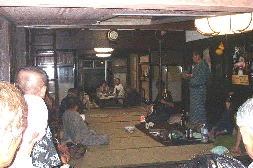 で、ウロついてると胡弓・三味線と唄が聞こえたので行ってみると1軒の家の前で人集りがしており、人垣の隙間から覗いてみると、その家の中で唄っとるようですなぁ、踊りはやってないが・・