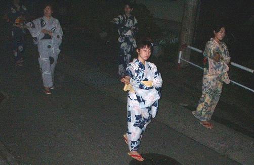 踊り子さんは、そろいの浴衣ではなく、各自の浴衣を着るのですなぁ。