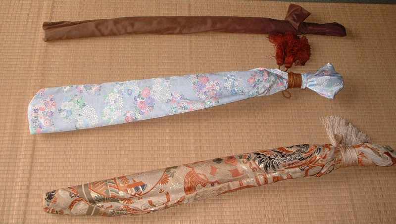 左の赤いのが「打ち粉」で、刀にポンポンする物です。