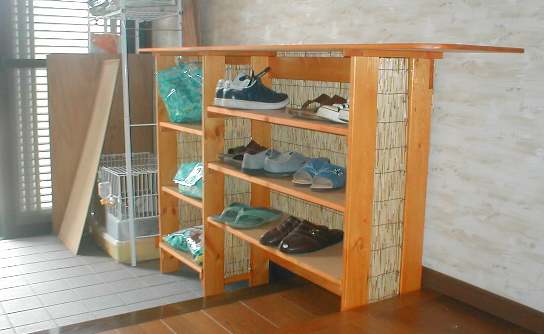 ホントは、靴が見えないように戸をつけたかったんですが、その他大勢が「見てくれよりも、すぐに取り出せる実用的な方が良い」と言うもんですから・・