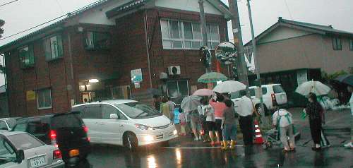 運転してた人が、雨に打たれながら、それを運びましたが列を作ってる人は見ているだけ・・